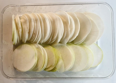 시판 단무지 먹을 때면 맛있게 먹으면서도 너무 달거나 위생상 안좋은 얘기도 들어서 좀 찜찜한데 색소나 화학 첨가물 없이 자연의 재료와 기본 양념으로 만들어서 정갈하면서도 깔끔한 맛이 나요.
