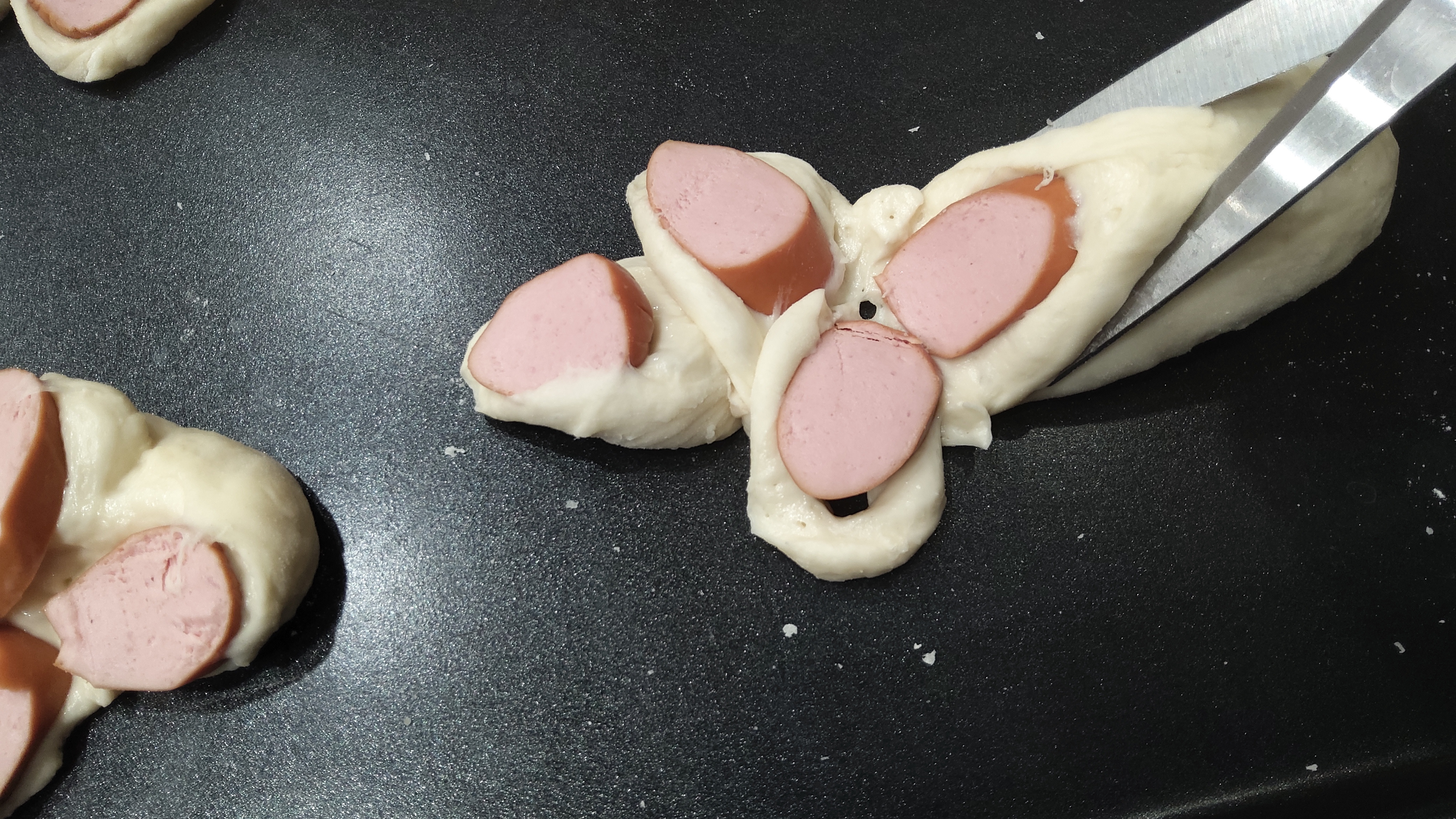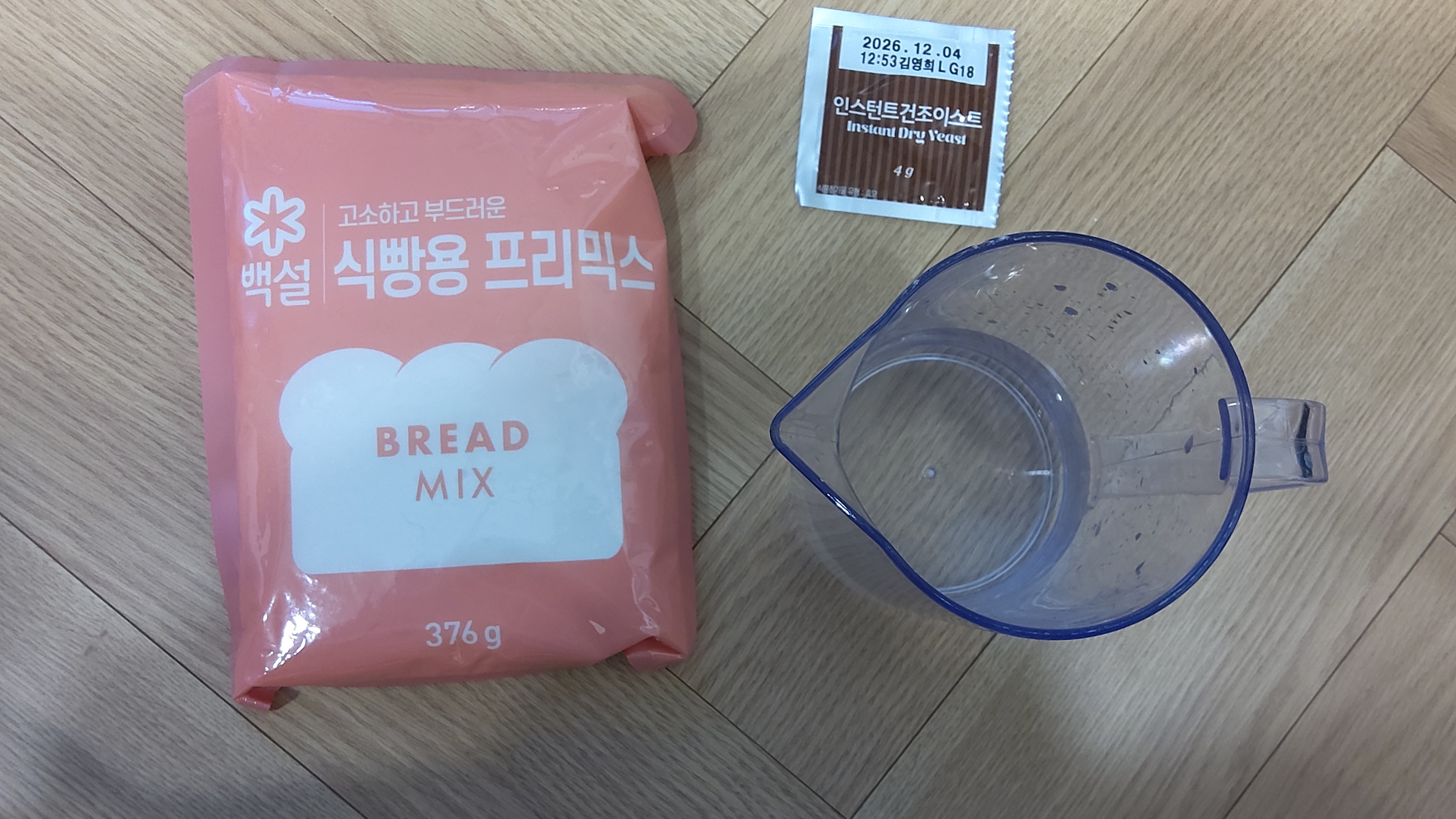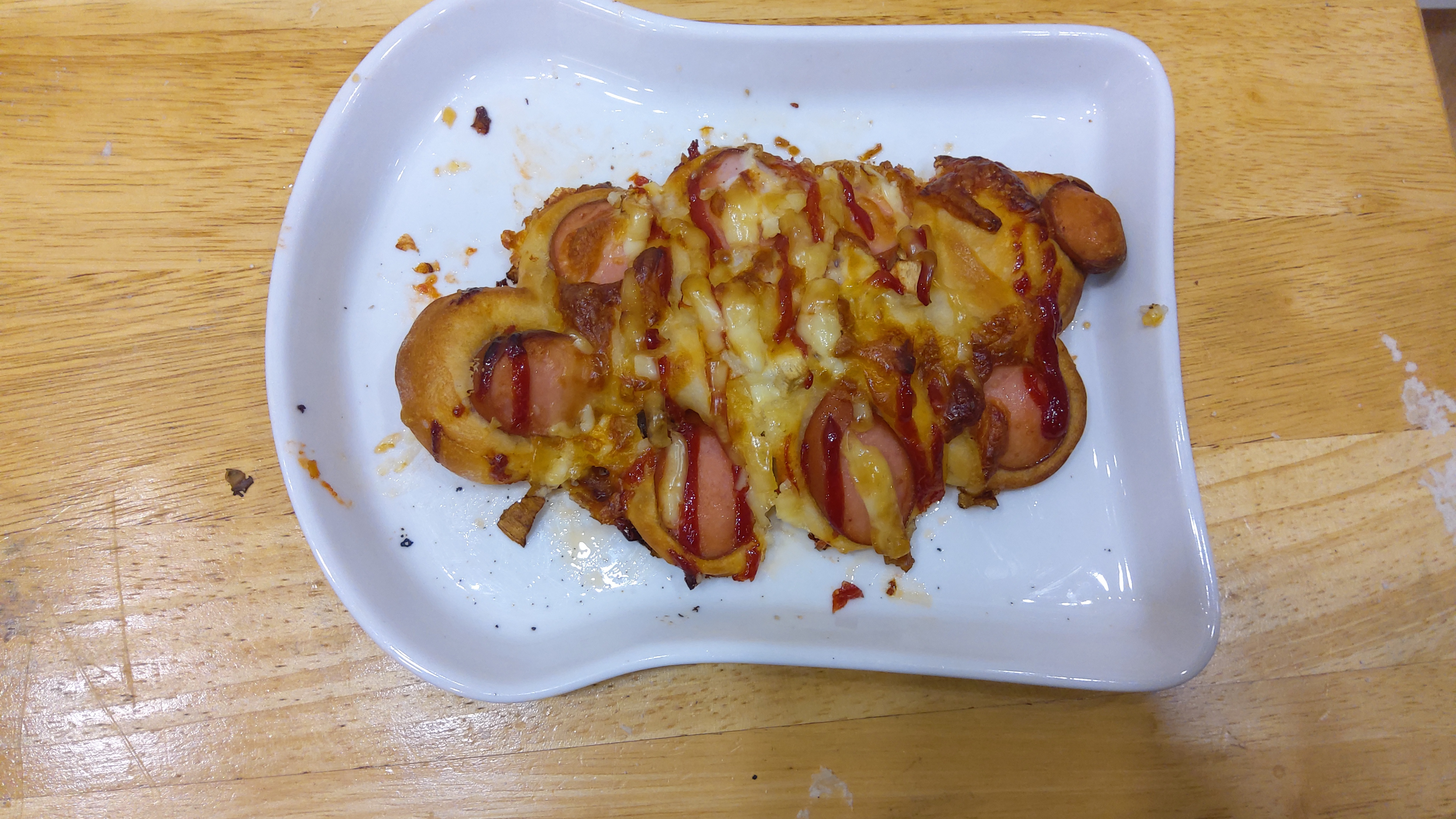 그래서 집에 박혀있는 식빵믹스랑 냉장고 깊숙이 있던 소세지 불러내서
