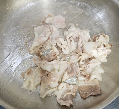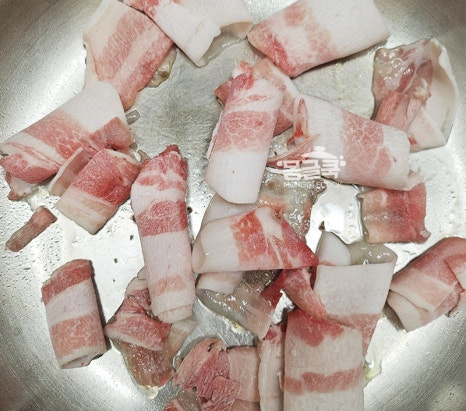 팬이 뜨거워지면 대패삼겹살을 넣고 노릇하게 볶아주세요.