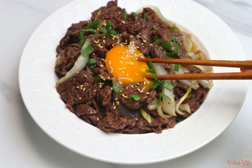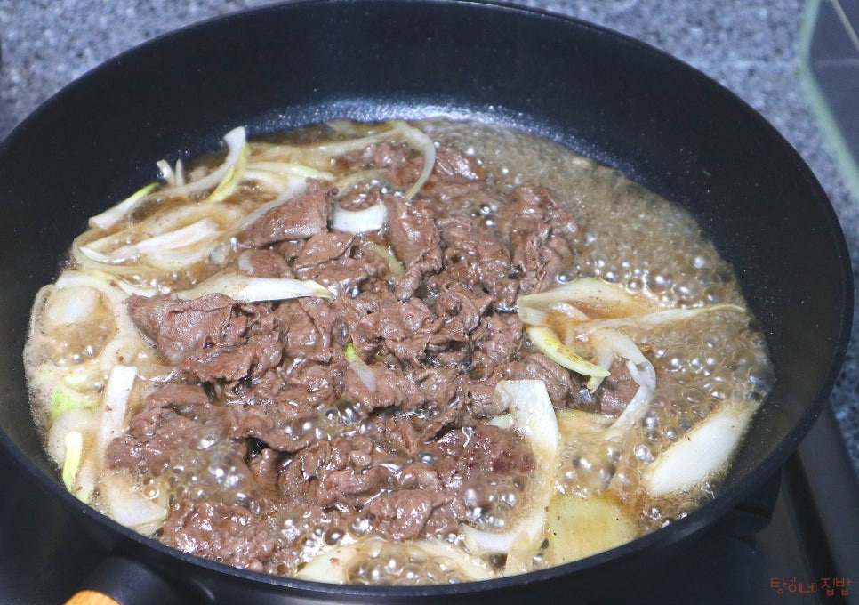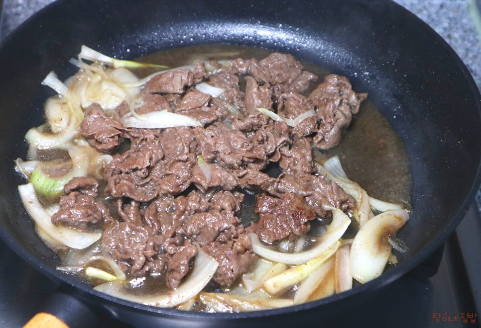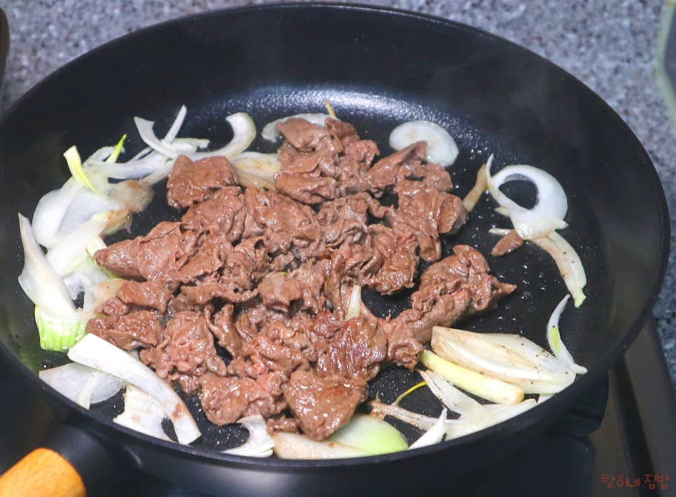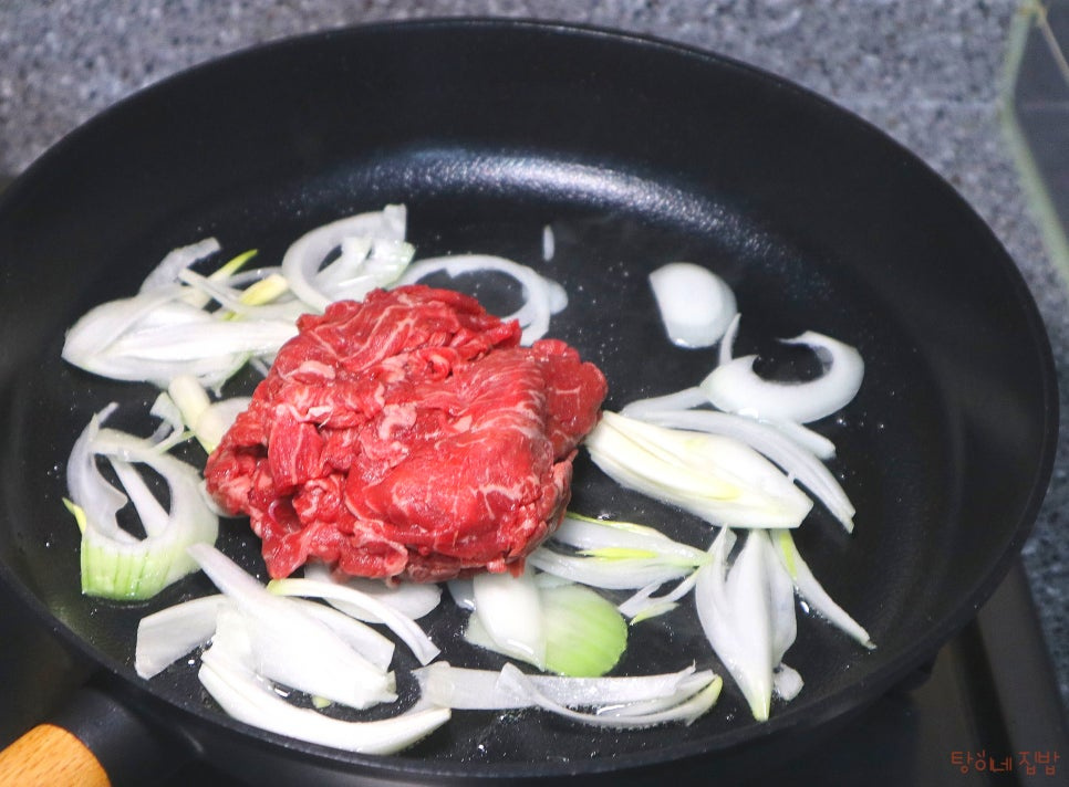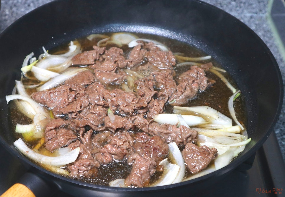 불고깃감 소고기 150g 양파 1/2 대파 (고명용 생략)