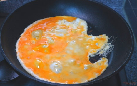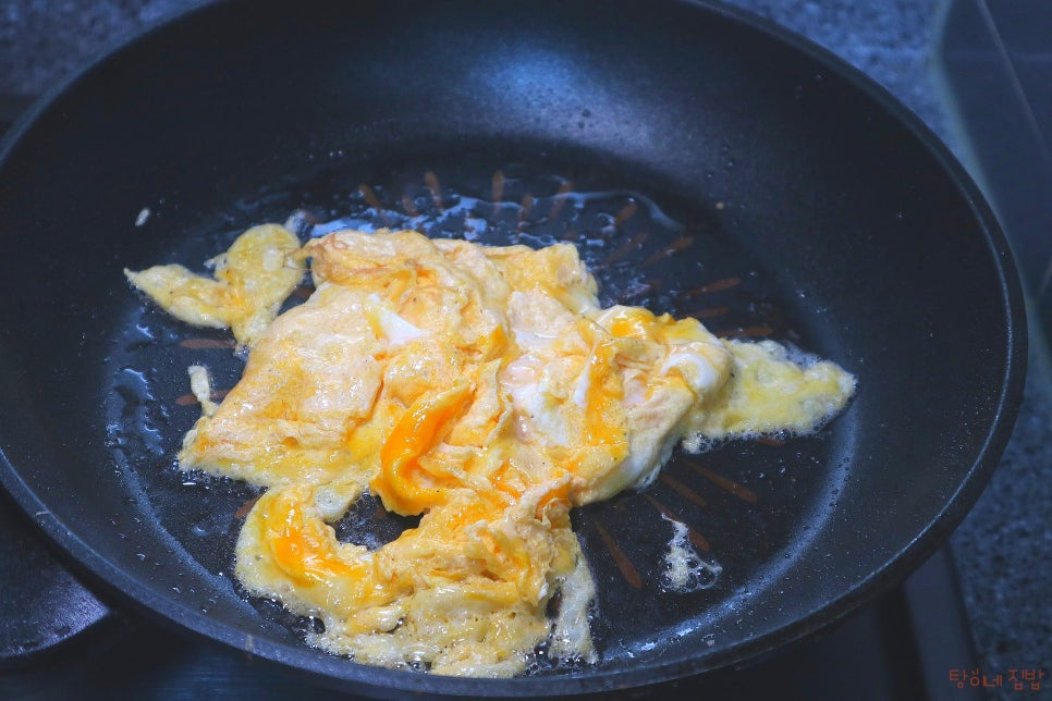 → 스팸 자체에 기름이 많기 때문에 따로 기름을 두르지 않아야 느끼하지 않고 깔끔해요.