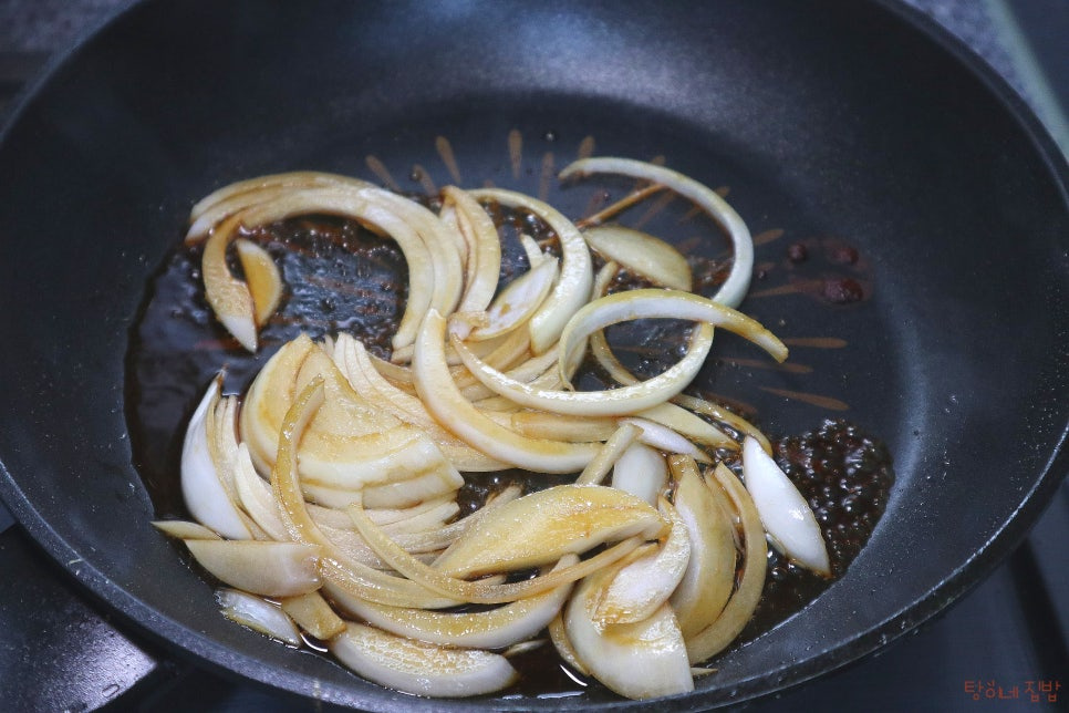 → 갈색빛이 돌 때까지 볶아야 단맛이 깊어지고 짭조름한 스팸과의 조화가 훨씬 좋아요.