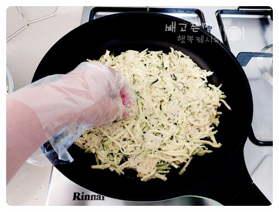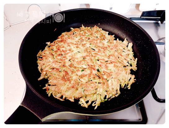 그리고 뒤집어 노릇하게 부쳐줍니다.