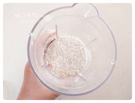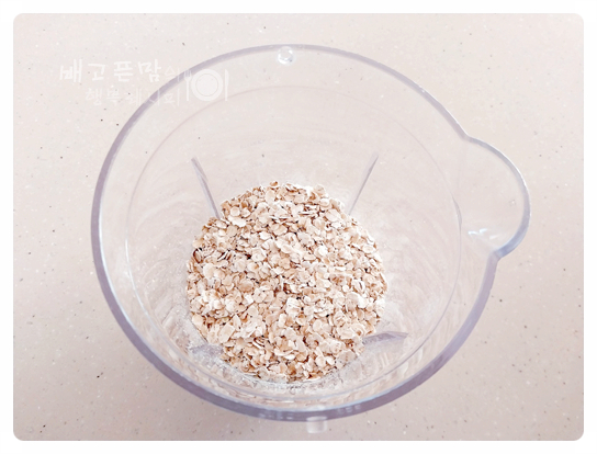 오트밀 2컵을 믹서기에 넣고 갈아 주었습니다.