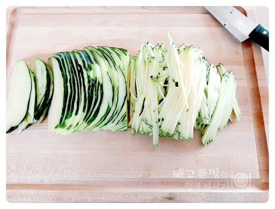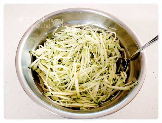 그리고 호박을 곱게 채 썰어 주었습니다.