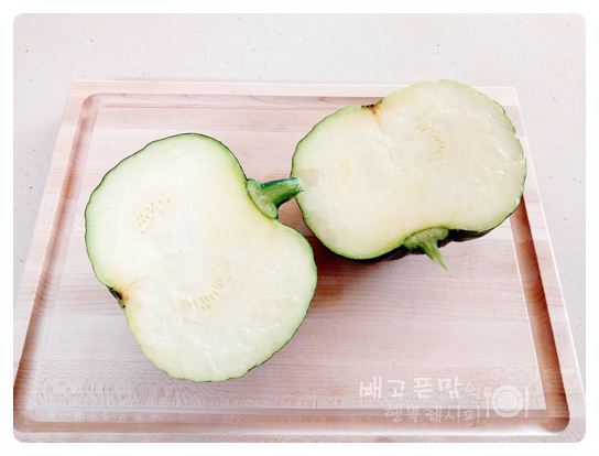 애호박을 흐르는 물에 씻어 반으로 잘라보니