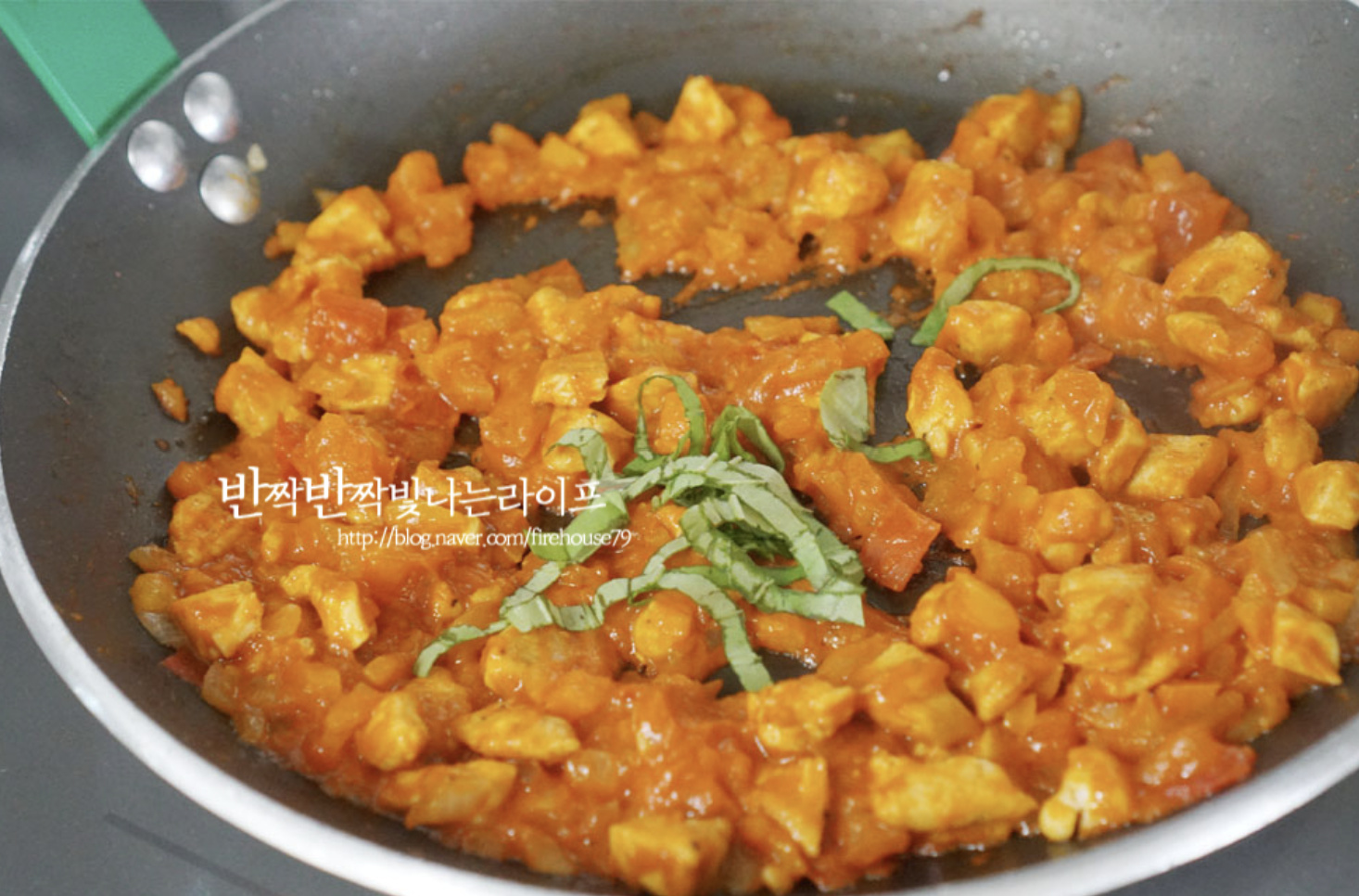 취향에 따라 바질잎 1~2장도 잘게 썰어주면 향이 좋아요