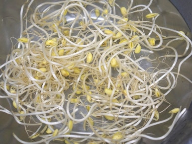 콩나물 150g을 준비해 겉에 붙은 콩껍질이나 시든 콩나물을 골라내 주세요. 그리고 찬물에 여러번 흔들어 씻어준 후 물기를 빼주세요.
