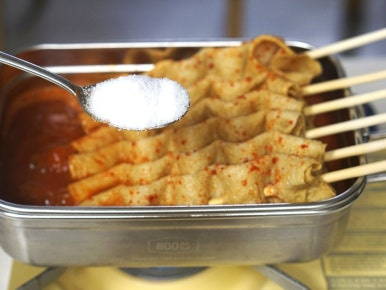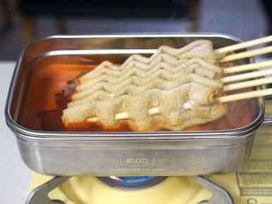 꼬치어묵을 넣고 중불에서 5분간 끓여 양념이 스며들게 해주세요.