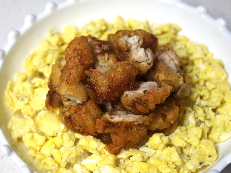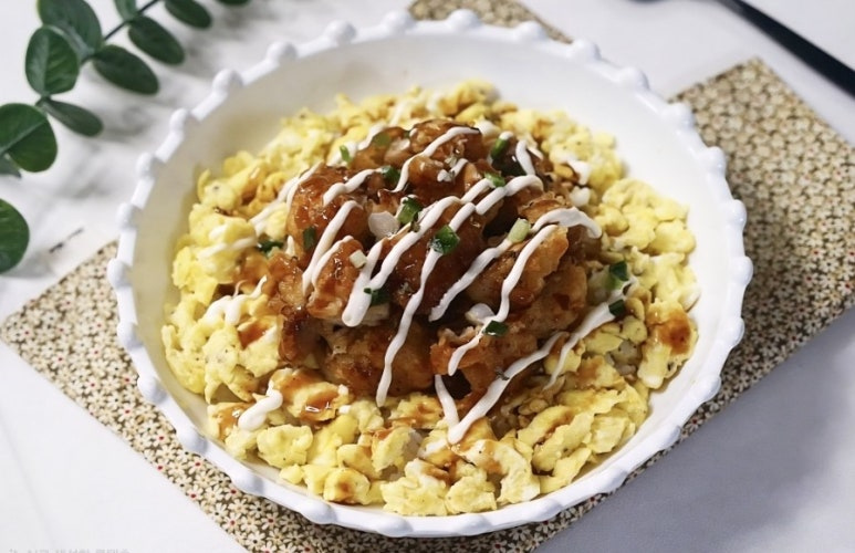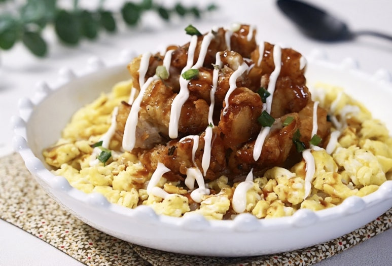 냉장고 속 남은 치킨 한 조각으로 만드는 치킨마요덮밥 입니다. 남은 치킨을 에어프라이어에 한 번 바삭하게 구워주고 짭쪼롬하게 졸인 양파 간장소스와 부드러운 스크램블에그, 그리고 고소한 마요네즈와 돈가스소스를 듬뿍 얹으면 밥 한공기 뚝딱할 수 있는 간단한 한 끼가 만들어져요. 오늘은 남은 치킨을 다시 맛있게 살리는 꿀팁! 한그릇 음식으로 만들기 좋은 참치마요덮밥 소개해 드릴게요 '◡'