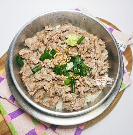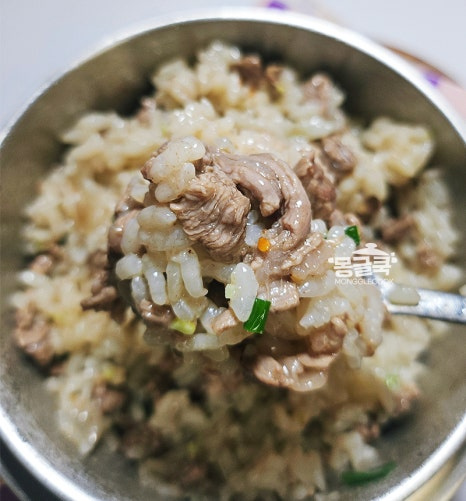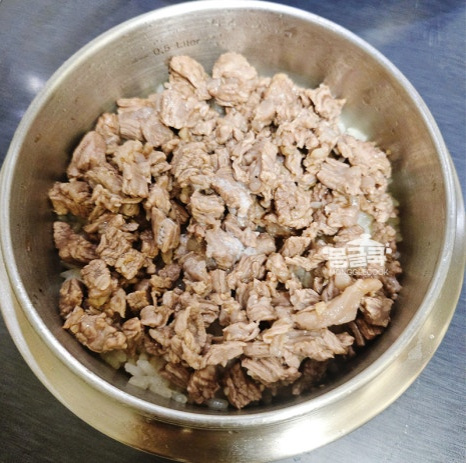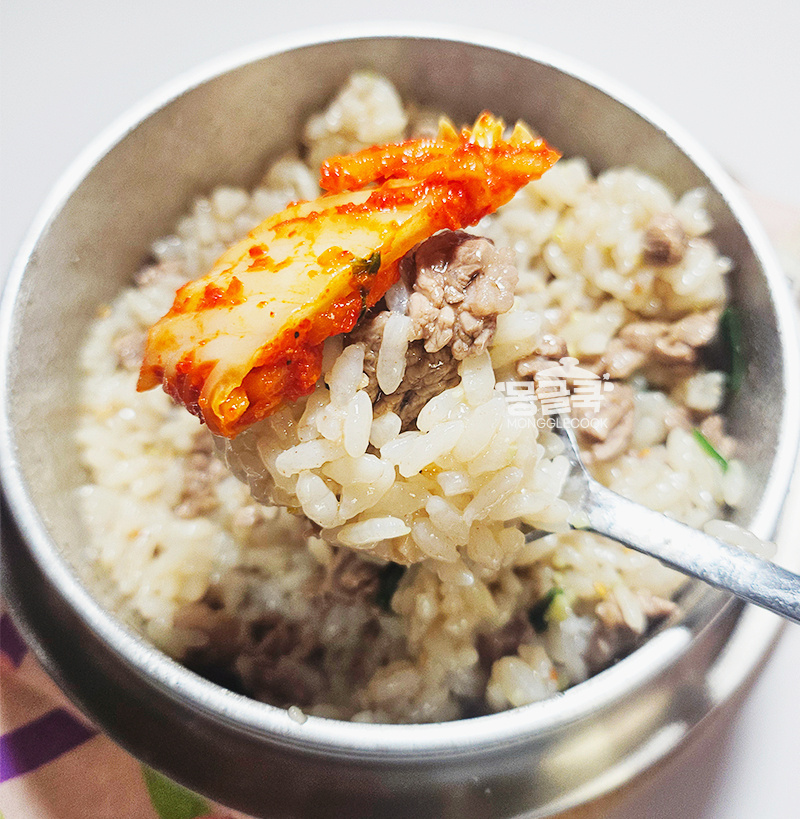 불을 끄고, 덜어두었던 양지 고기를 밥 위에 올린 뒤