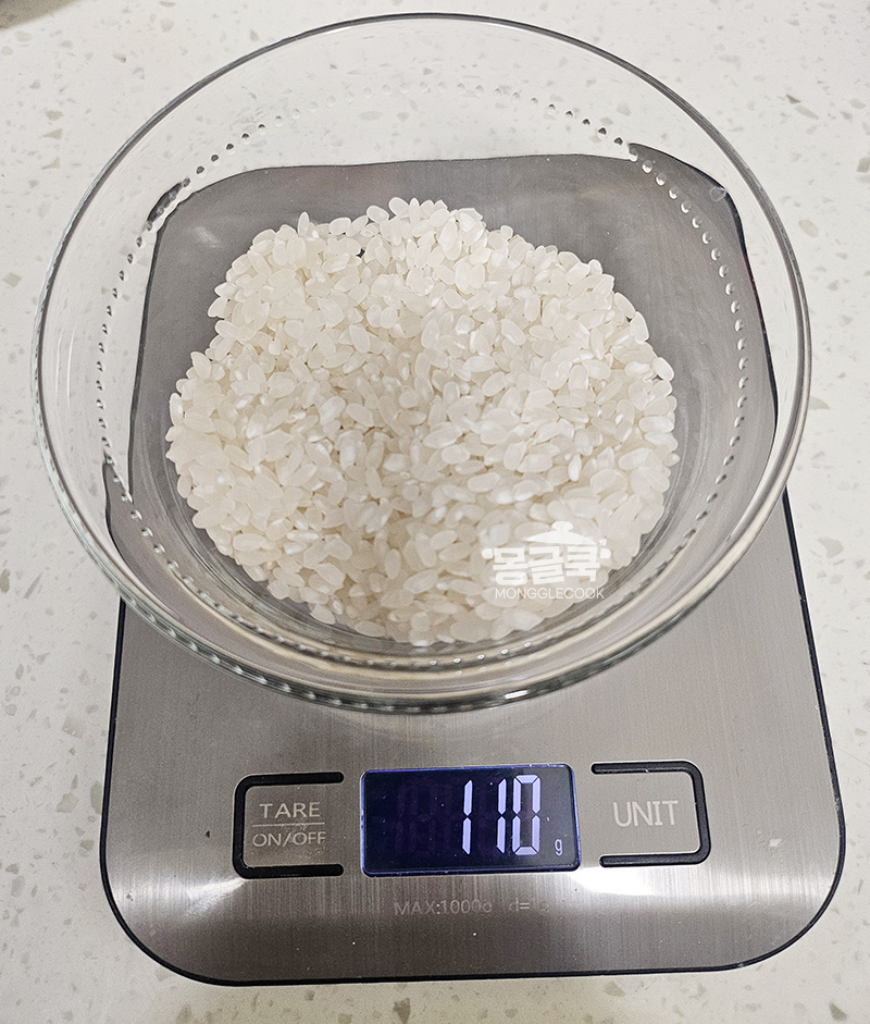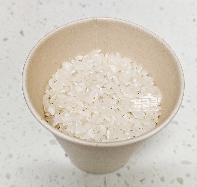 먼저 쌀 110g(종이컵 약 2/3 정도)을 깨끗이 씻어