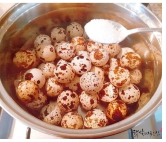 힘조절 잘 하셔서 흔들어 주세요.그럼 마구 흔든다 보면 다 까진 메추리알도 있고