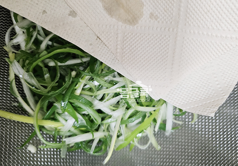 파채무침이 물 생기지 않게 하는 첫 번째 비법이 바로 이 과정이에요.