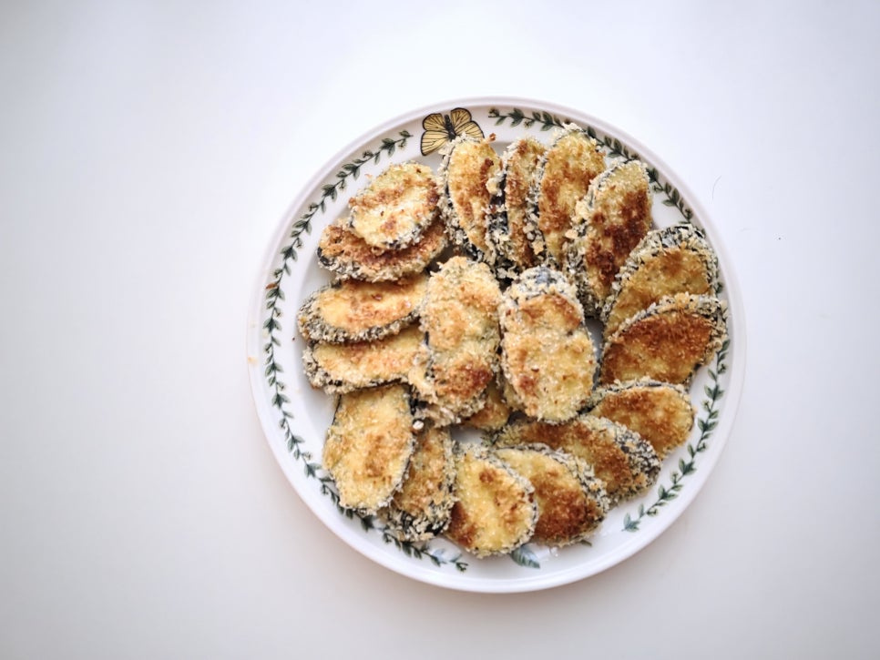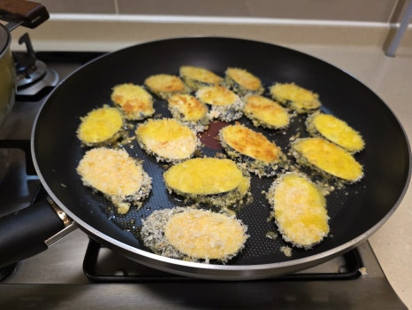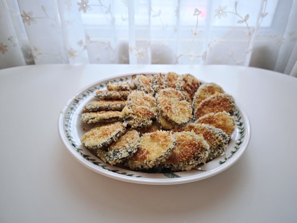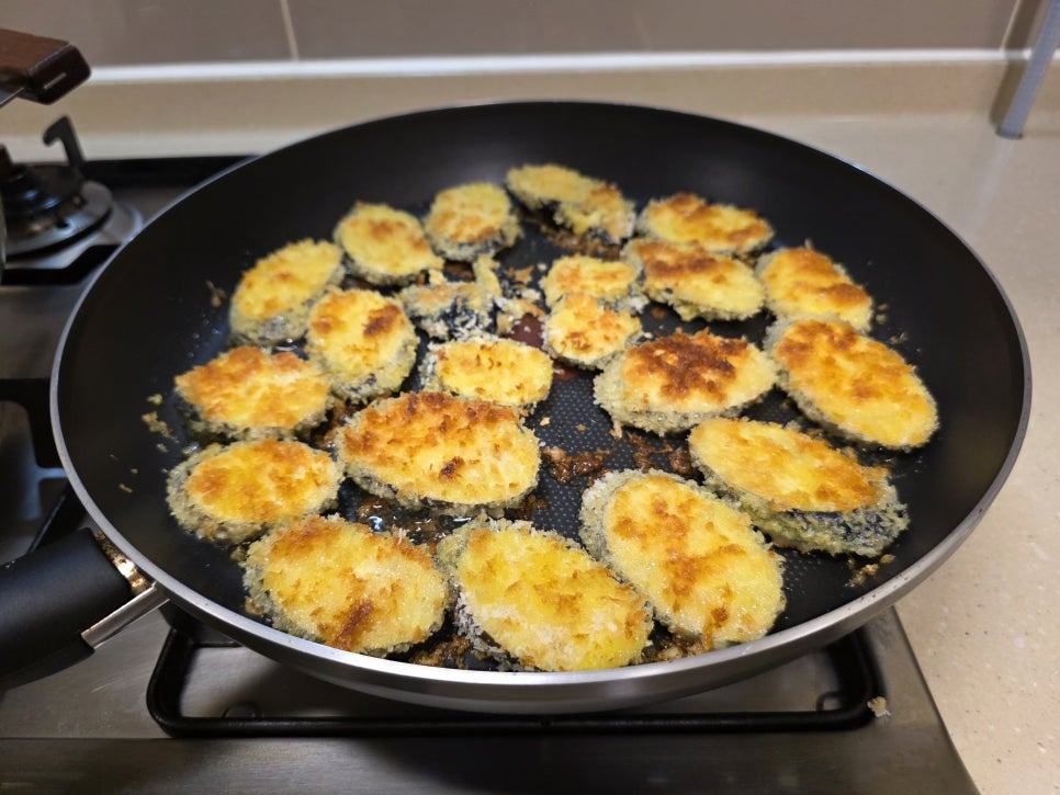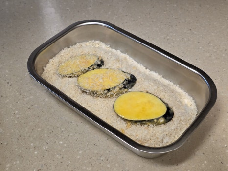 빵가루 입힌 가지 1개, 식용유 3바퀴