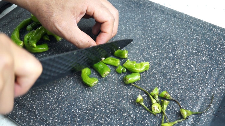 2. 꽈리고추는 깨끗히 씻어서 2~4등분으로 잘라주세요.