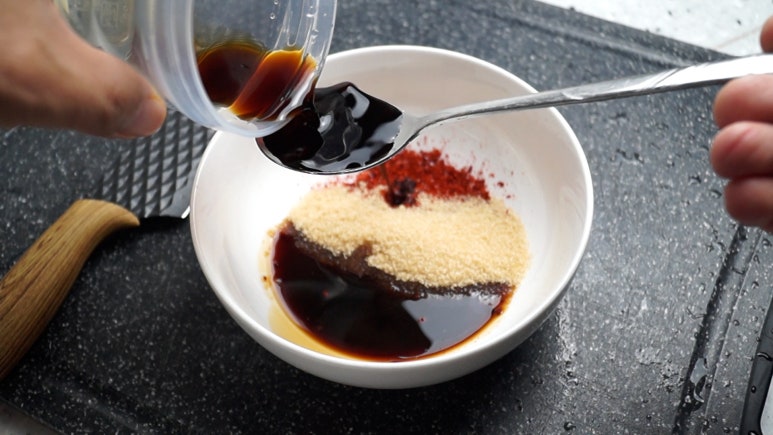 12. 양념을 골고루 섞어서 설탕을 완전히 녹여주세요.