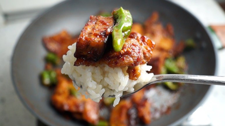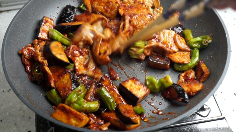 18. 가지와 고기 그리고 꽈리고추를 밥위에 얹어 드셔보세요! 정말 제대로된 밥도둑이랍니다~