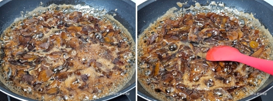커피가 들어가서 찐득하기 때문에 시간이 조금 오래 걸리는데요. 인내심을 가지고 계속 섞어 주고 졸이면 됩니다.