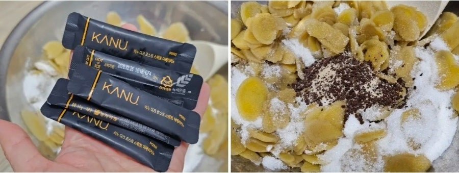 점점 완성되어 가는 과정이 보이지요. 요게 인내심이 필요한 건데요. 이게 정말 되나? 실패한 것 아닌가? 싶을 정도로 의문이 드는데 그 과정을 지나 계속 섞으면 어느새 사각사각 소리 내며 완성되지요.