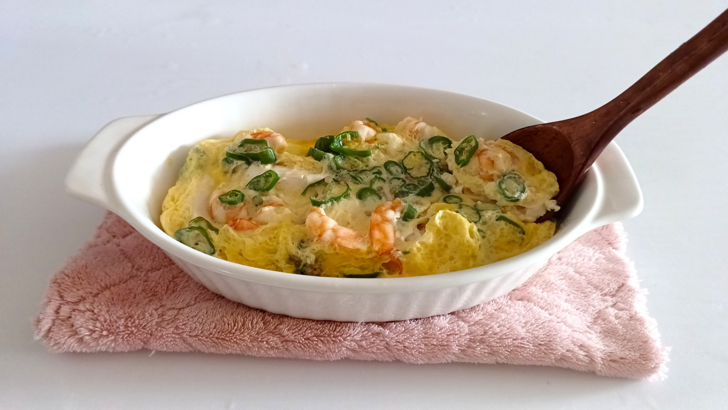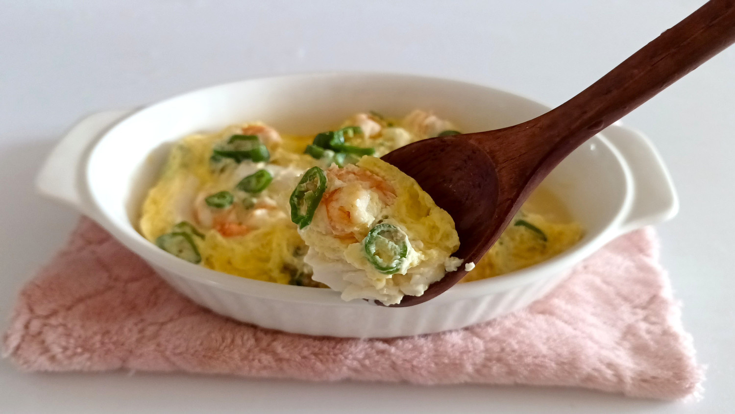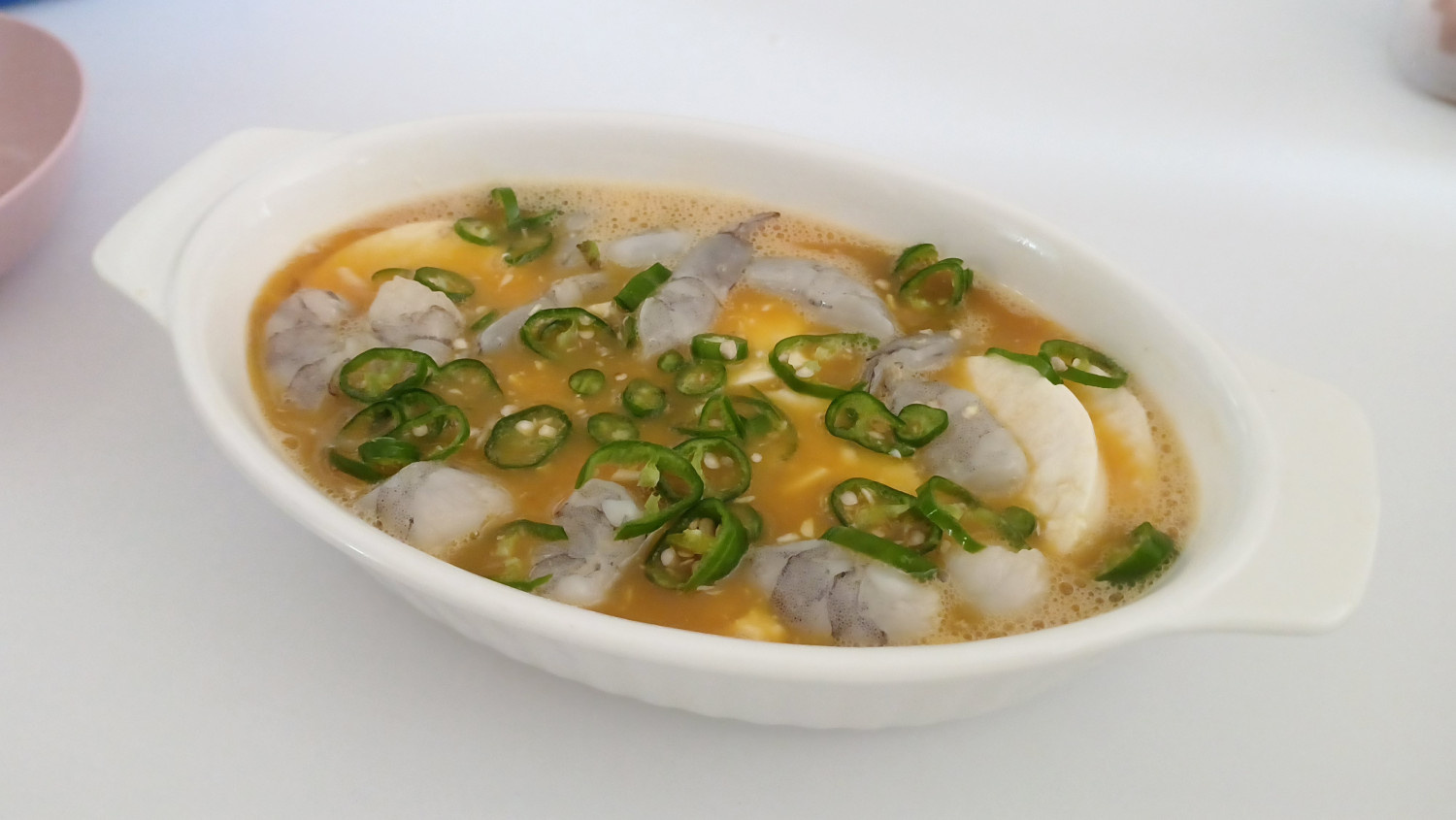 살이 덜 찌고 건강한 재료들을 찾다가 달걀, 순두부, 새우를 넣어 순두부 달걀찜을 만들었어요