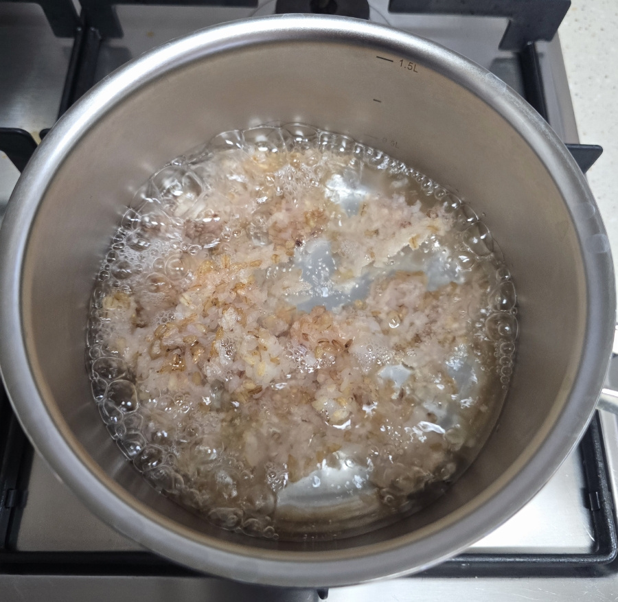 누룽지 가장자리가 노릇노릇해지기 시작하면, 주걱으로 살살 들춰보세요.