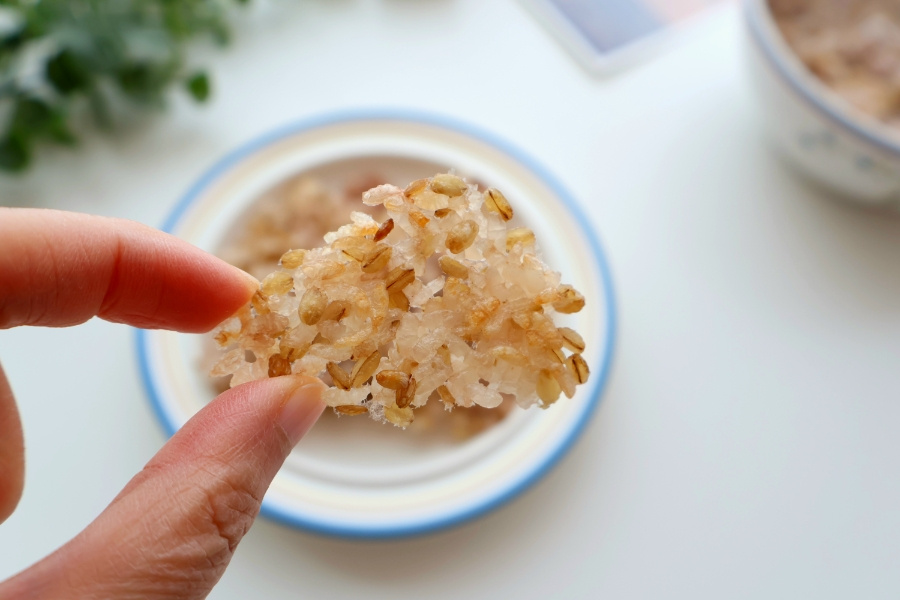 하지만 찬밥은 수분이 적당히 날아가서 밥알 표면이 살짝 단단해져 있어요.