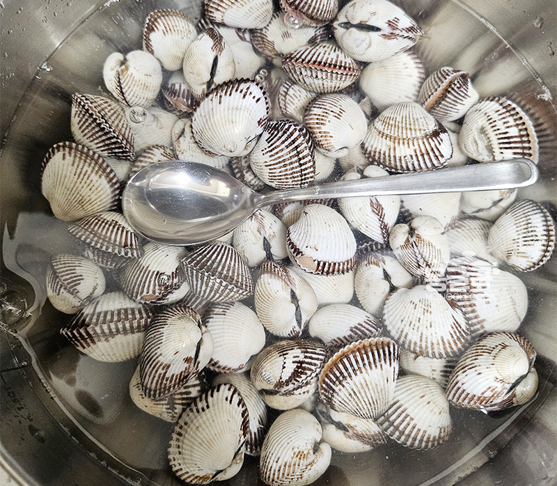 이물질이 있을 땐 꼬막 삶은 물에 살랑살랑 흔들어 헹궈주세요. 삶은 물에는 꼬막의 감칠맛(육즙)이 그대로 남아있어, 맹물에 헹구는 것보다 맛 손실을 최소화하면서 뻘만 제거할 수 있어요.