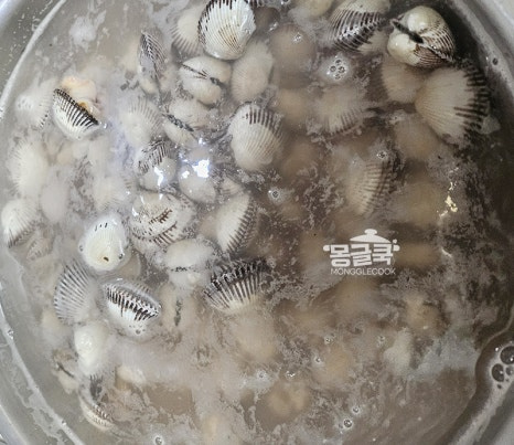 꼬막을 삶는 물이 뿌옇게 탁해지는 것은 꼬막의 단백질 성분 등이 우러나오는 것으로 정상이에요.