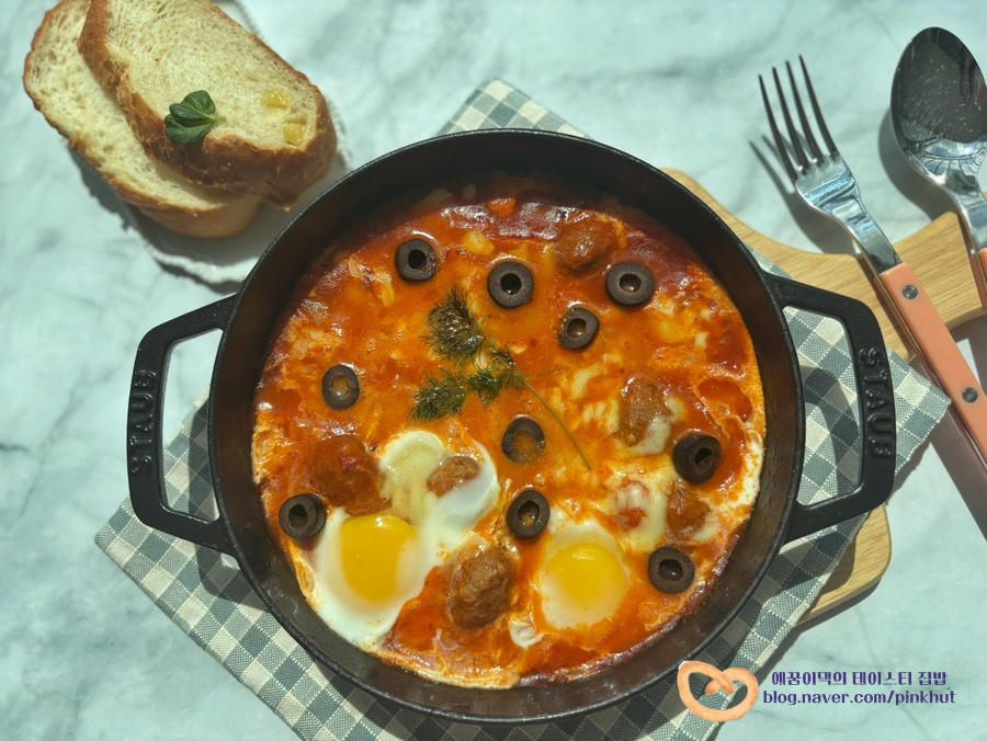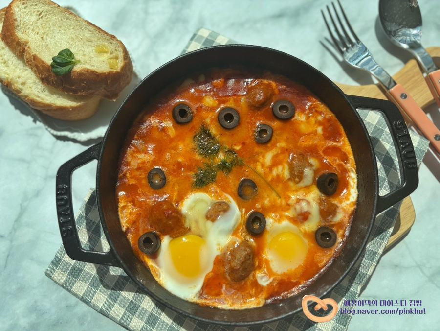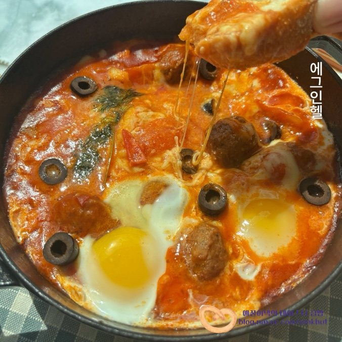 빵까지 푹 찍어 먹으면 너무너무 맛있어요. 10분이면 완성할 수 있는 초간단 에그인헬 안 만들 이유가 없죠?ㅎㅎㅎ