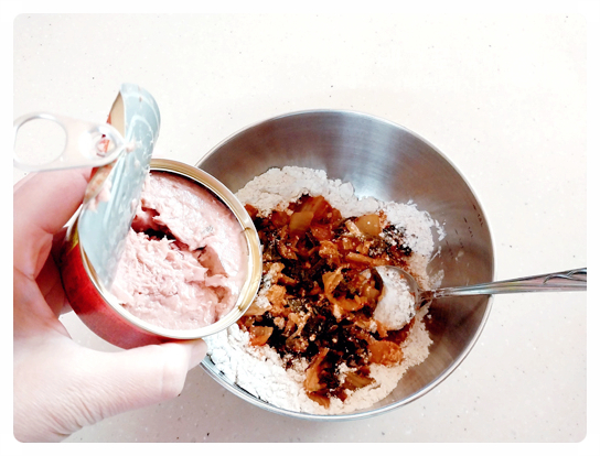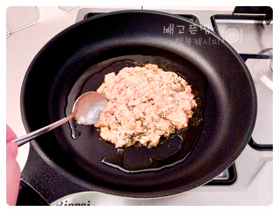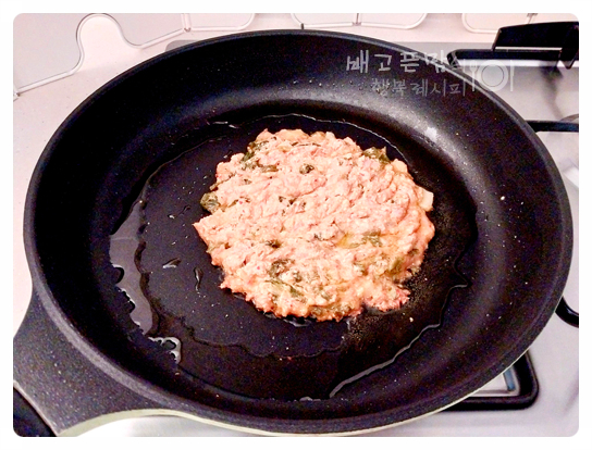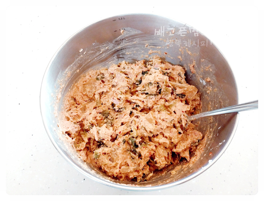 그리고 참치캔 하나를 몽땅 넣고 반죽해