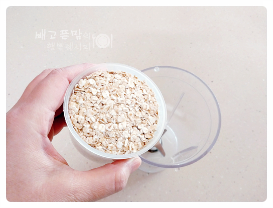 오트밀 1 컵을 믹서기에 갈아 줍니다.