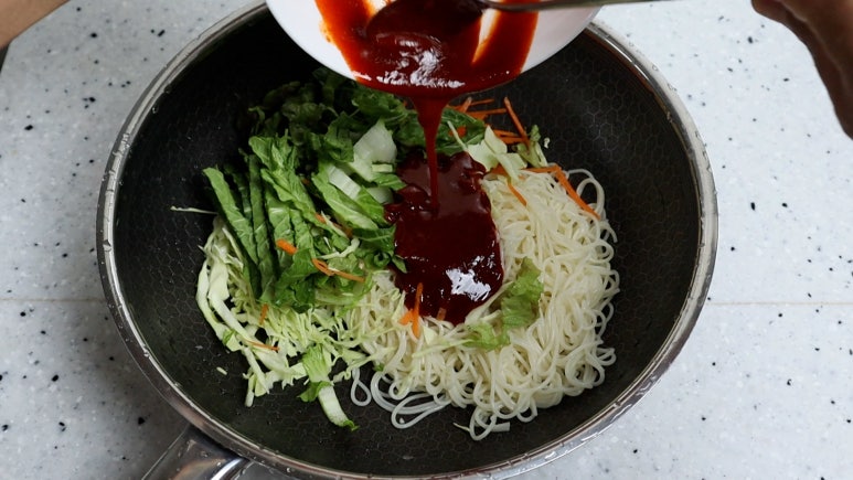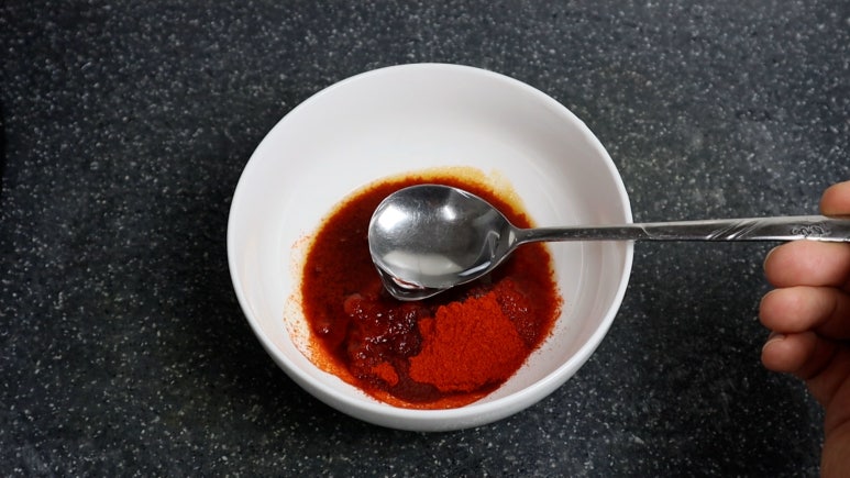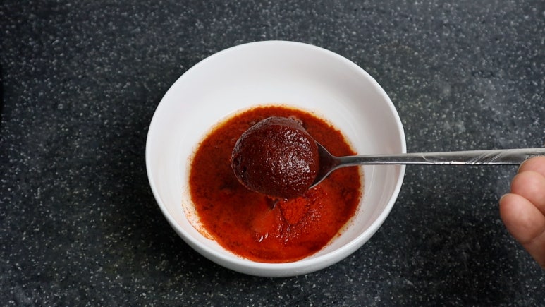 9. 고추장을 넣어주세요. 집고추장 보다는 시판고추장이 비빔국수에 더 맛있더라고요.