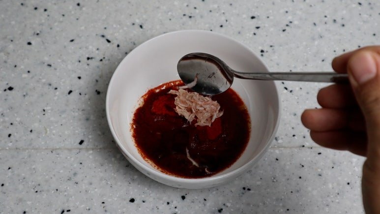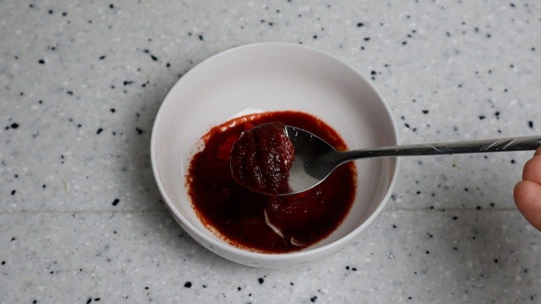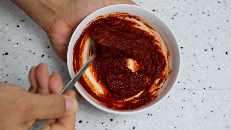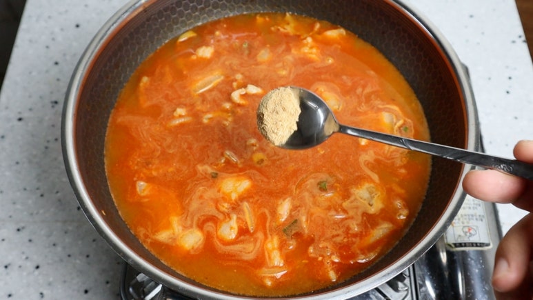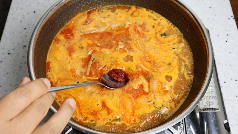 10. 칼칼한 매운맛 더할 고추장을 살짝 넣어주세요.