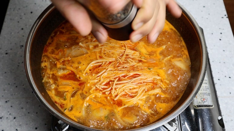 22. 후추가루를 1~2꼬집 뿌려주세요. 돼지나 소가 들어간 국물엔 후춧가루가 들어가야 제맛입니다.