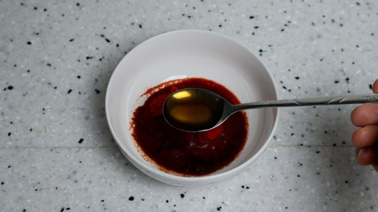 14. 기름이 이렇게 적당이 빠져 나와야하는데 기름이 너무 없다면 식용유 1스푼을 부어주세요.