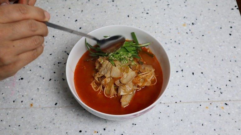 20. 3분정도를 바글바글 끓여 주시다가 국물 맛을 살짝 보시고 맛을 더하고 싶으시면 남겨놓은 양념장을 더 넣어주세요.