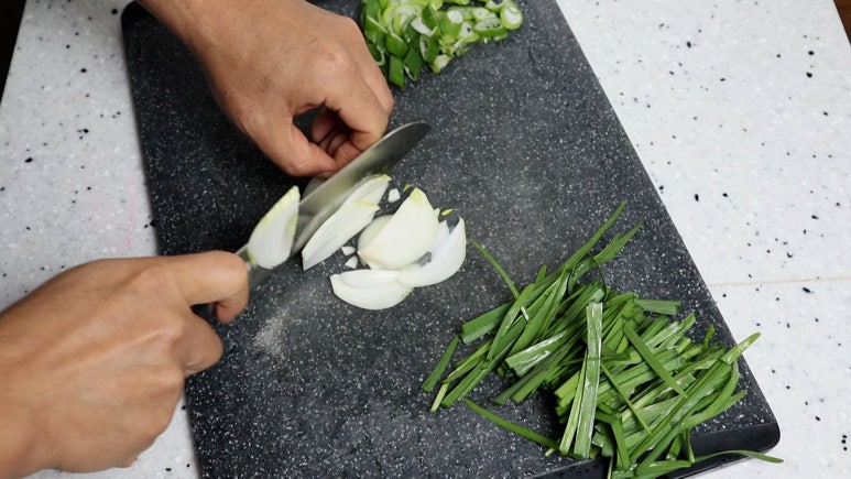 3. 양파는 잘게잘게 채를 썰어주세요.