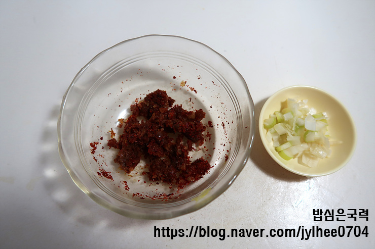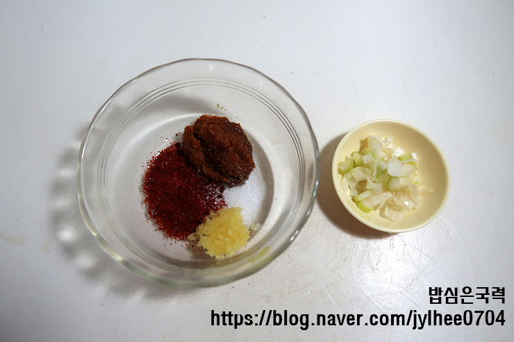 작은 볼에 된장 1T, 고춧가루 0.5T,