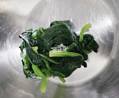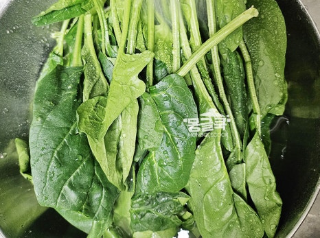 씻은 시금치는 체어 밭쳐 물기를 잠시 빼주세요.