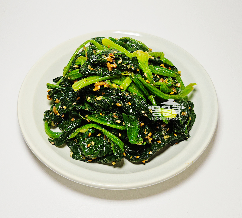 다진 마늘은 너무 많이 넣으면 시금치 특유의 향이 가려지므로 적당량을 지키는 것이 포인트