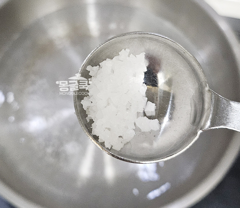 냄비에 물을 붓고 끓기 시작하면 소금 반 큰술 정도 넣어주세요.