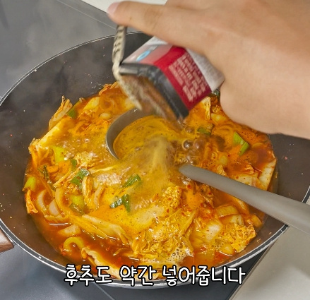 보글보글 끓기 시작하면 후추를 약간 뿌리고 부족한 간은 소금으로 조절하세요.