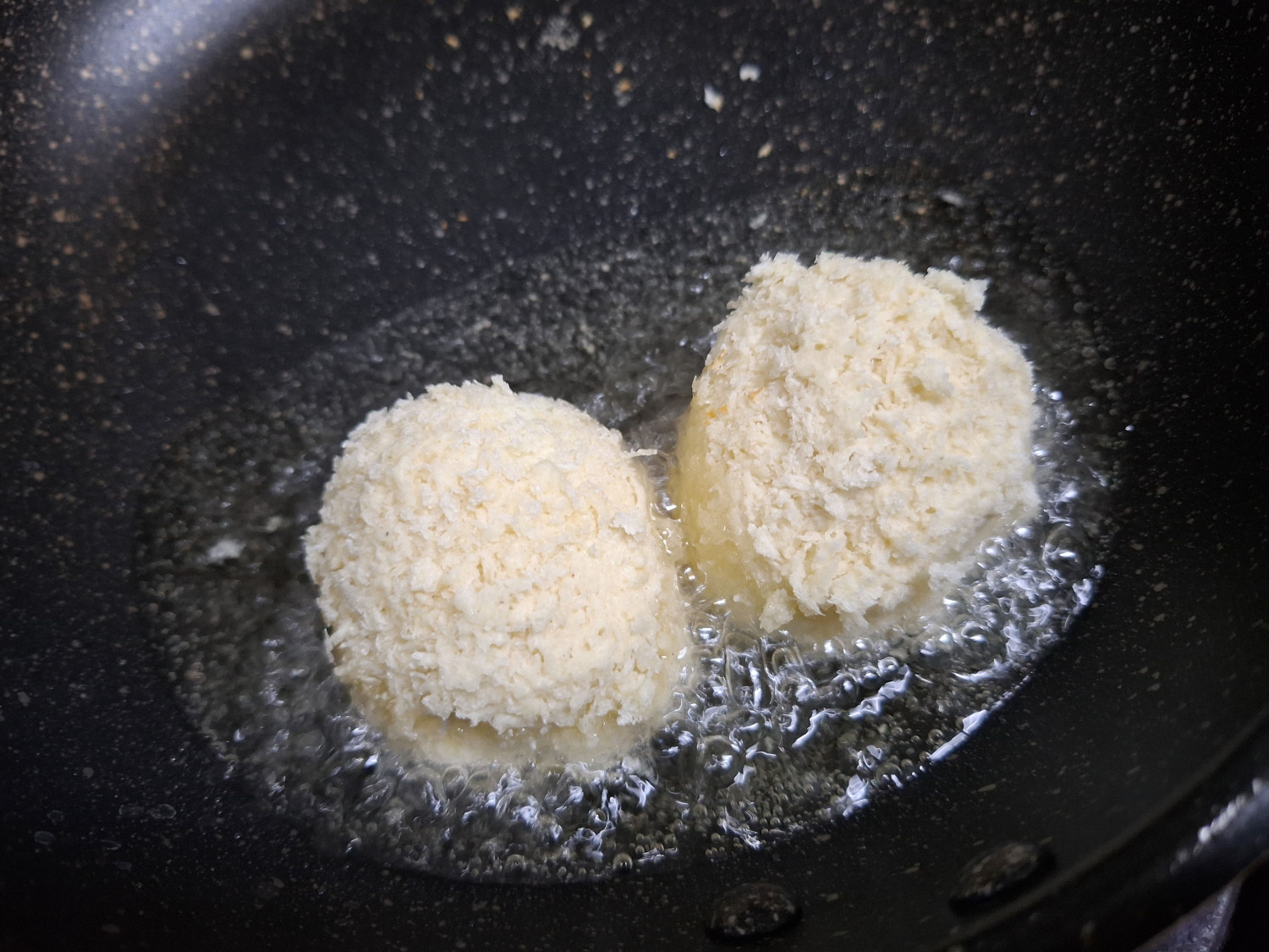 뒤집어서 나머지 반도 튀겨주세요.
