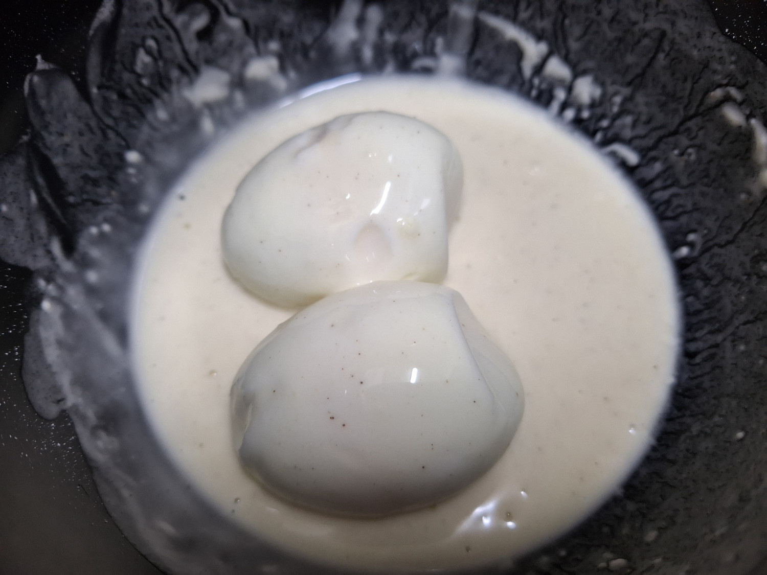 최소한 달걀 반이 잠길 정도로 식용유를 부어주세요.