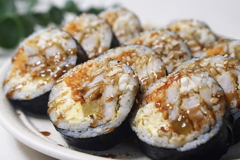 돈까스김밥은 요리에 익숙하지 않은 분들도 실패 확률이 낮고 냉동 돈가스만 있어도 금방 조리가 가능하기 때문에 집에 남은 돈가스 활용 요리로도 아주 좋아요. 특히 냉동 돈까스를 활용하면 튀김 작업 없이 깔끔하게 만들 수 있어 요리의 난이도도 낮아지면서 뒷정리까지 간편해지죠! 겉보기엔 평범한 김밥처럼 느껴질 수 있지만 영양 밸런스가 잘 맞는 건강한 메뉴, 돈가스김밥 레시피 소개해 드릴게요 '◡'