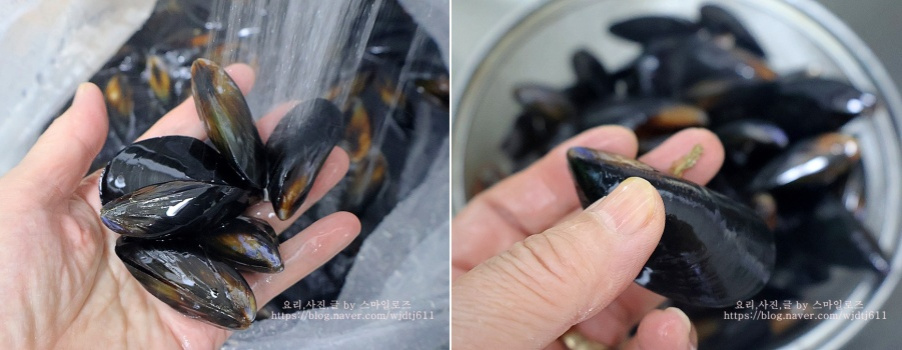 홍합은 해감 없이 흐르는 물에 세척하고 족사를 제거해 주면 되는데요
