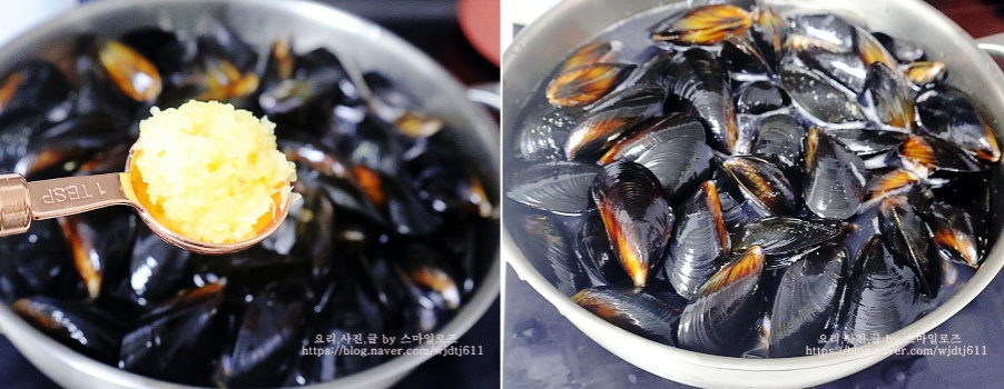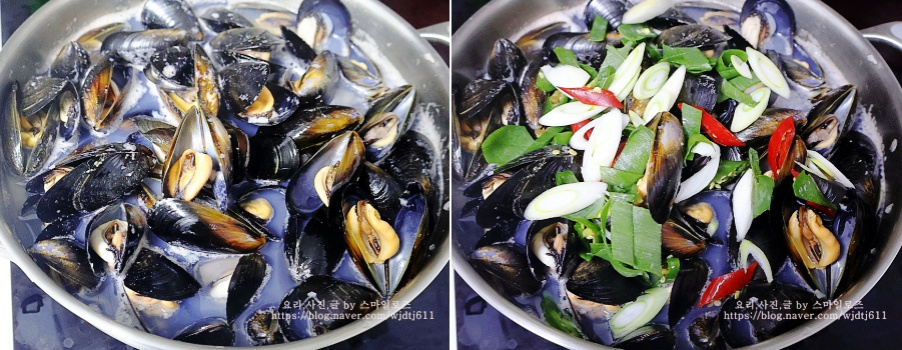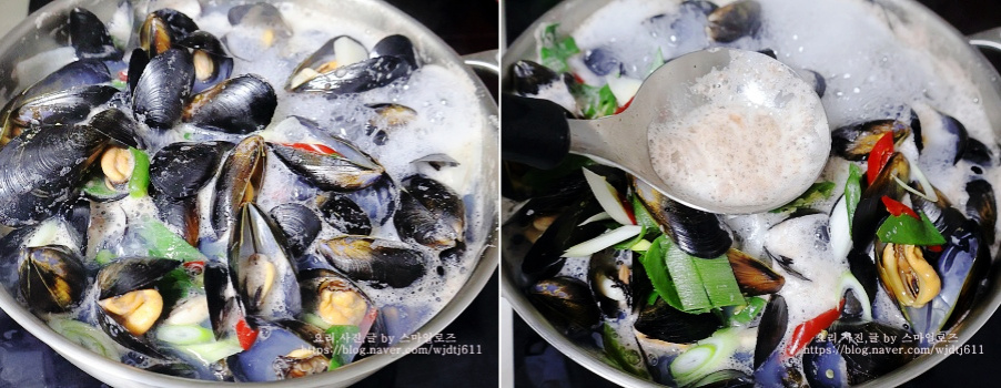 끓기 시작하면서 홍합입이 벌어지기 시작하면