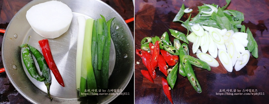 대파와 홍고추 청양고추는 어슷 썰어줍니다
