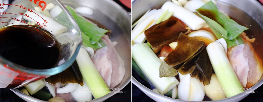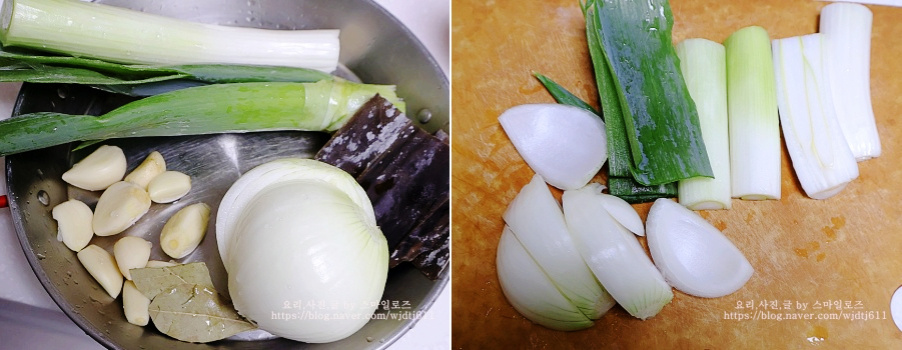 다시마 등을 넣고 월계수잎도 넣어줍니다